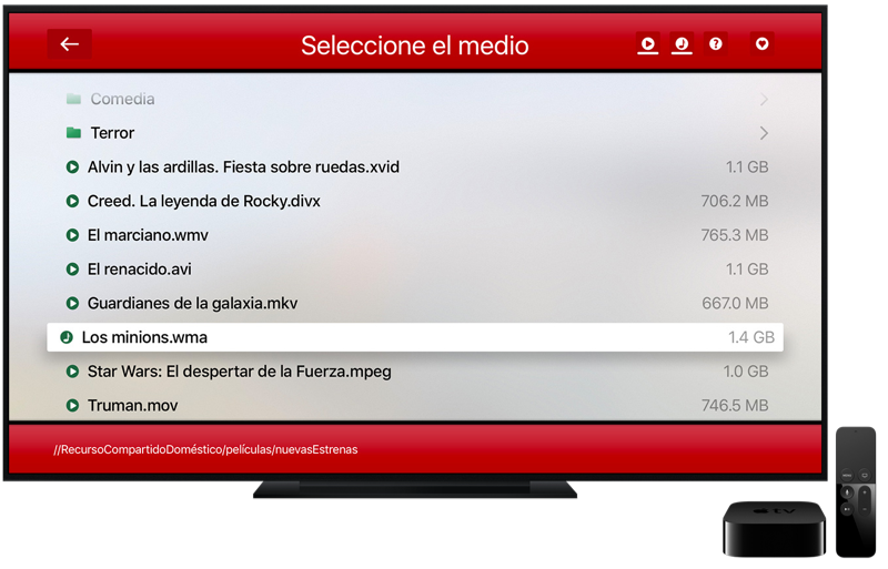 "Reproductor de vídeo AviFAST para muchos formatos de películas" Descargar de Apple TV AppStore. Buscar: AviFAST